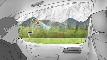 Dans un long trajet en voiture, les parents se disputent. Pour l'enfant à l'arrière qui s'ennuie, son seul échappatoire est son imagination. Il regarde par la fenêtre, et imagine un bonhomme courant sur le paysage. La réalité rattrape parfois le rêve.
